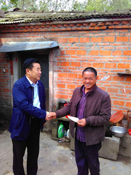 在第三個“全國扶貧日”來臨之際,10月14日,阜陽市公司黨委書記張華山帶領(lǐng)黨委班子成員來到阜南縣龍王鄉(xiāng)楊郢村開展扶貧幫扶走訪活動。張華山一行在龍王鄉(xiāng)鄉(xiāng)干部的陪同下現(xiàn)場參觀楊郢村專業(yè)養(yǎng)殖場,聽取了村干部對村扶貧產(chǎn)業(yè)發(fā)展情況的介紹,張華山詳細了解脫貧政策落實情況并就單位開展干部扶貧包戶幫扶進行安排部署。最后,張華山一行深入到包戶貧困家庭走訪,為貧困戶脫貧致富獻計獻策并送上扶貧慰問金。