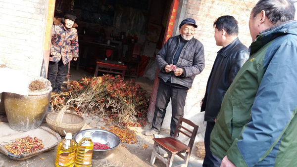 譙東鎮(zhèn)余集村是我市重點貧困村,我公司負責13戶特困村民,春季前夕,專程為特困村民送去慰問金和食用油,送去黨和政府的溫暖,送去鹽業(yè)人的關(guān)愛。每到一戶,榮立華都問寒問暖,并叮囑他們保重身體,87歲的特困戶李秀蘭拉著榮立華的手熱淚盈眶,連聲感謝黨和政府的關(guān)懷,榮立華叮囑老人我們會把扶貧工作做好做到位,希望老人家安度晚年、健康長壽。