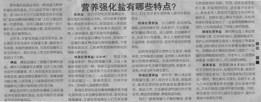 《市場星報》:營養(yǎng)強化鹽有哪些特點