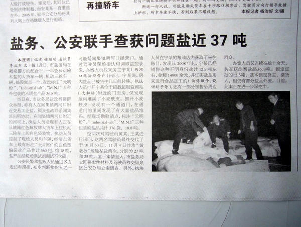 經(jīng)兩次對駕駛員黃某、王某進行訊問,這兩名駕駛員最終交待了于10月30日、11月4日共為“黃老板”運輸私鹽兩次,分別為27噸和25噸。鑒于案情重大,市鹽務(wù)局立即將案件材料及駕駛員移交潁泉區(qū)公安分局立案調(diào)查。另外,執(zhí)法人員在寧某的糧油店內(nèi)獲取了其來往賬目,發(fā)現(xiàn)2008年起,寧某銷售這種不明身份鹽計12.5噸左右,金額14000余元,并證實鹽是用來進行食品加工的(油炸馓子、燒餅坯子等),還有一部分銷售給周邊群眾。