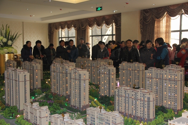 營(yíng)銷中心內(nèi)客戶觀看展示沙盤
