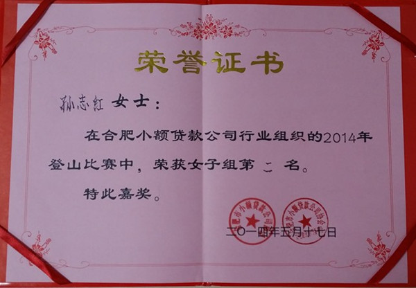 5月17日,由合肥市小額貸款公司協(xié)會(huì)組織的2014年登山比賽在大蜀山舉行,來自行業(yè)內(nèi)23家公司,共52名選手參賽。最終,經(jīng)過激烈的角逐,安鹽小貸公司孫志紅同志勇奪女子組第二名,展現(xiàn)了安鹽小貸公司員工奮發(fā)向上、勇攀高峰的精神風(fēng)貌。